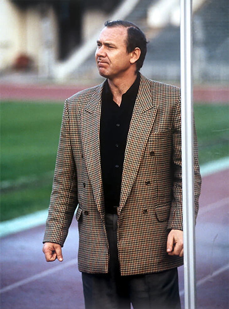 1992-й год. «Спартак» забивает «Ливерпулю» уже на 10-й минуте (в итоге будет 4:2), но Романцев все равно чем-то недоволен.