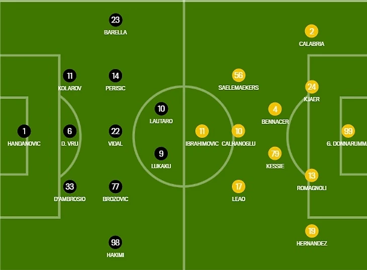 Так выглядят ориентировочные составы на миланское дерби по версии Gazzetta dello Sport (вероятно, издание перепутало позициями Бареллу и Перишича):
