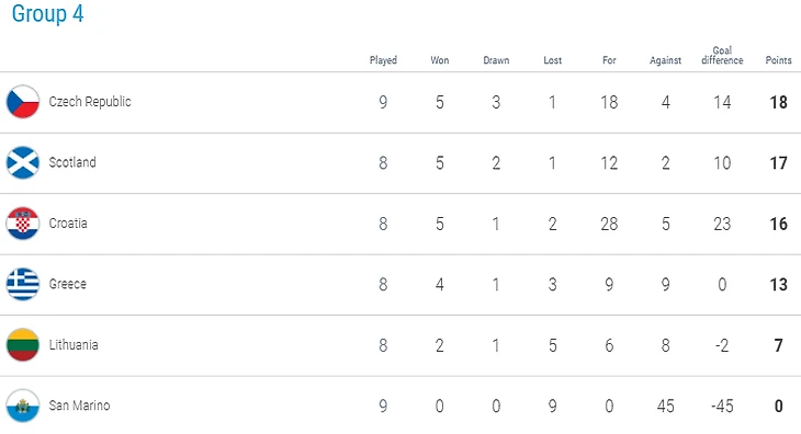 Последние две решающие игры команды сыграют в ноябре этого года: 12/11 Шотландия U21 - Хорватия U21 17/11 Хорватия U21 - Литва U21 13/11 Греция U21 - Чехия U21 17/11 Греция U21 - Шотландия U21