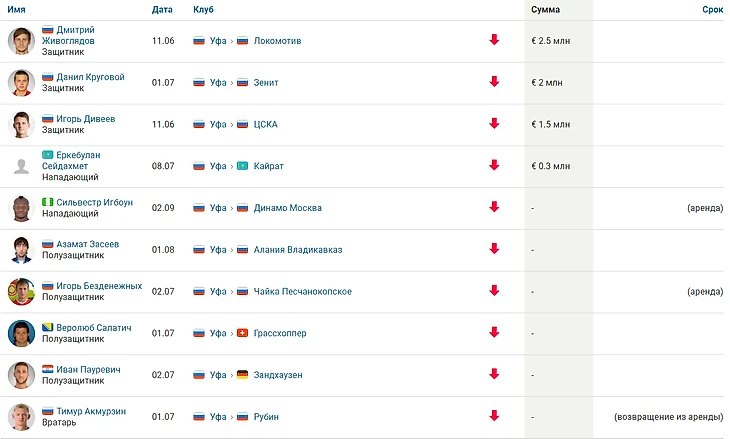 Футболисты Уфы, покинувшие клуб в летнее трансферное окно 2019 года.