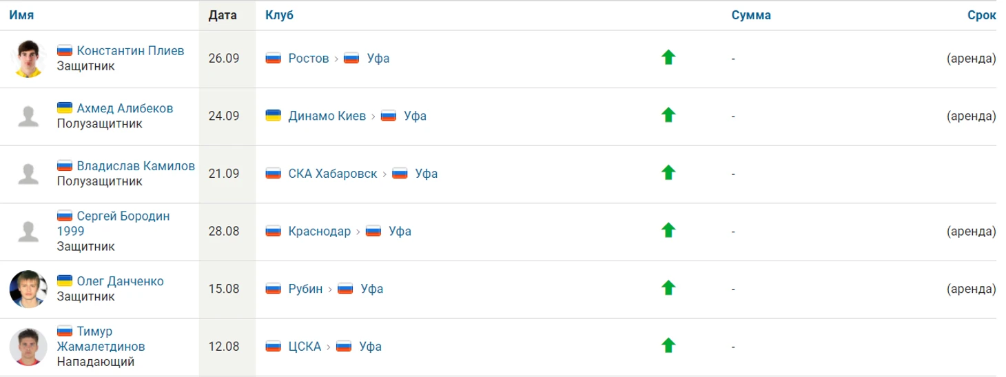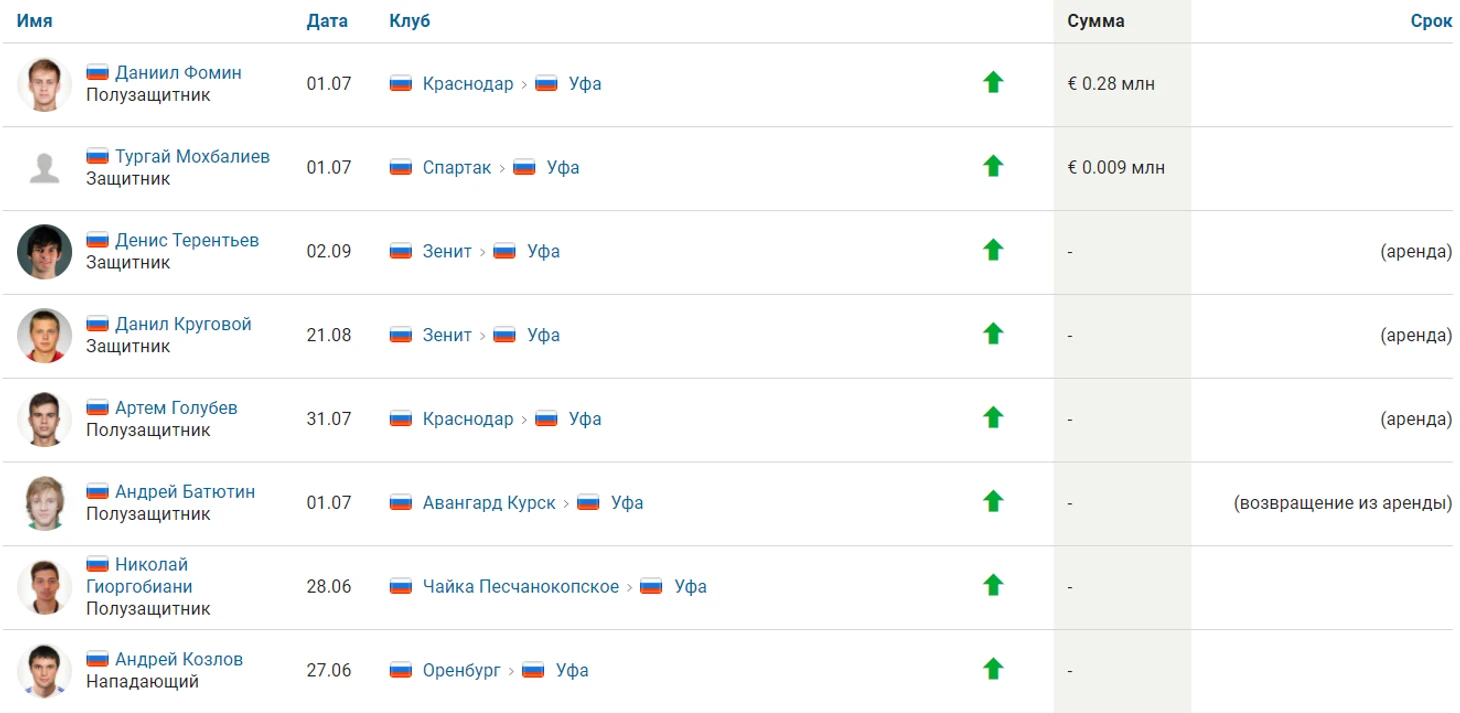 Футболисты, пополнившие состав ФК Уфа в летнее трансферное окно 2020 г. (сезон 20/21 начался 09.08.2020)