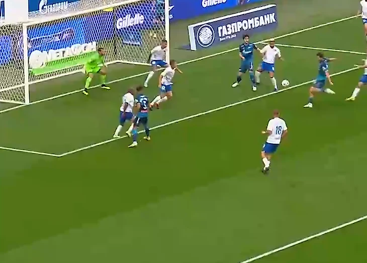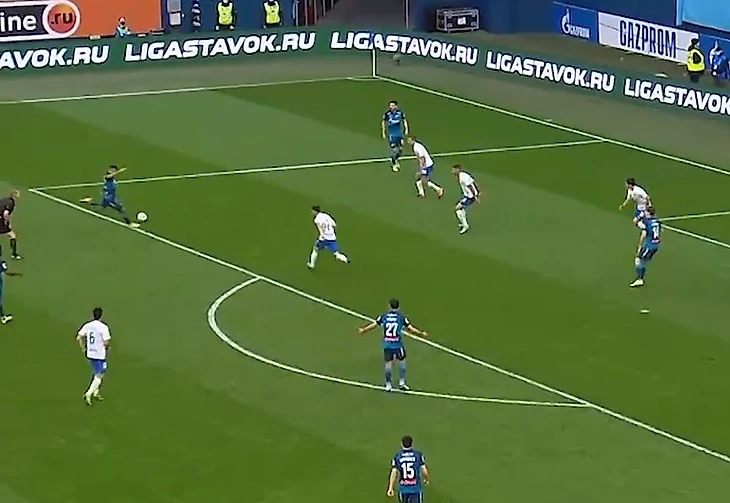 "Зенит" играл неплохо, но не сильно стремился забивать голы. Было видно, что команда копит энергию перед матчем с "Брюгге" в Лиге Чемпионов. Тем не менее, уже на 24-й минуте питерцы увеличили свой отрыв. Кузяев прорвался по правому флангу, навесил на голову Дугласу, который классно сбросил мяч Ерохину, замкнувшему передачу ударом по центру. Джанаев опять не при делах. 2-0.