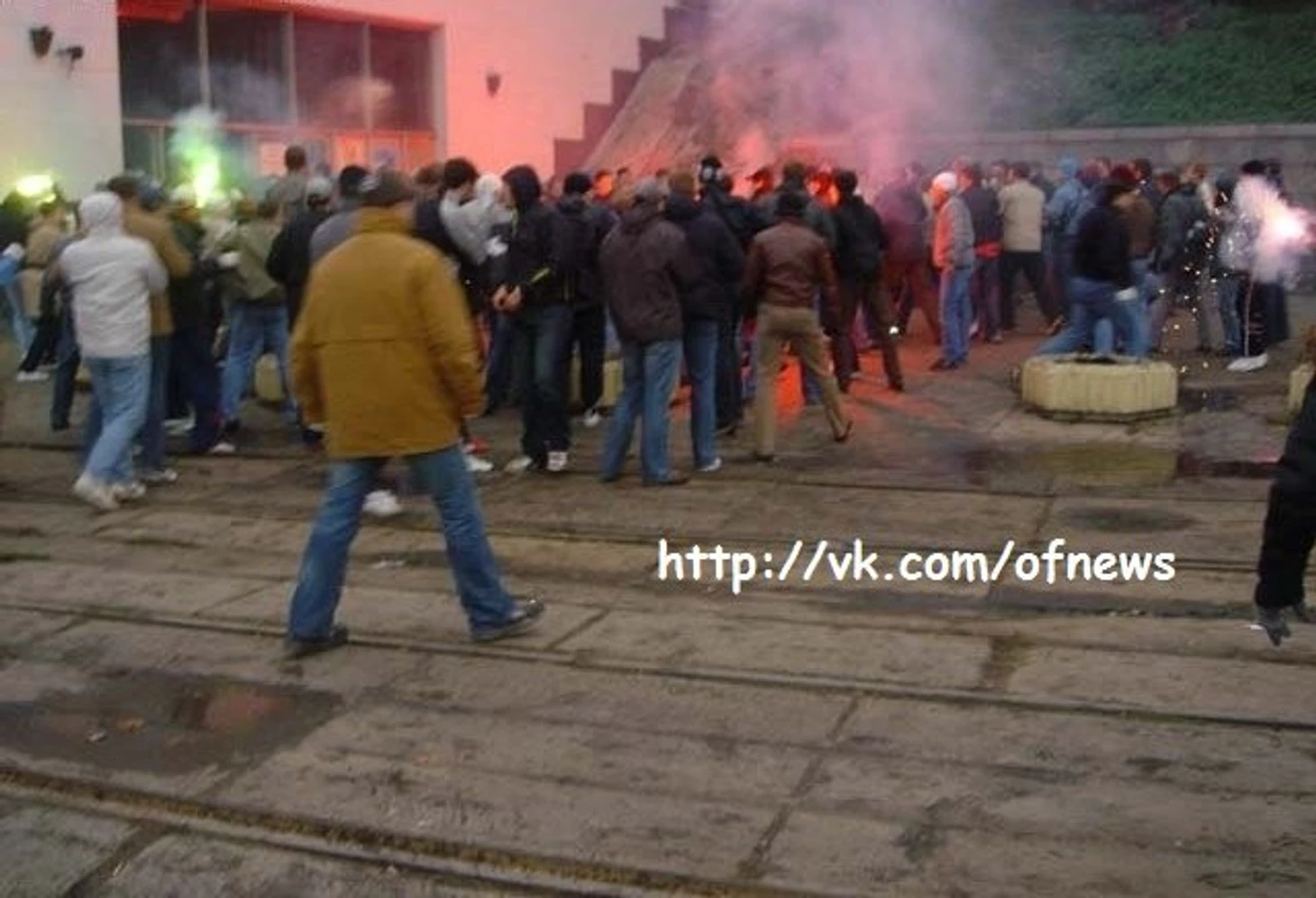 О количестве применяемых аргументов с обеих сторон: хохлы – пряжки, арматура, цепи, ножи, камни, файера; мы – бутылки, файера, камни. Хохлы утверждают, что ножи достали в ответ на зажженный файер. Ну что ж, делайте выводы сами.