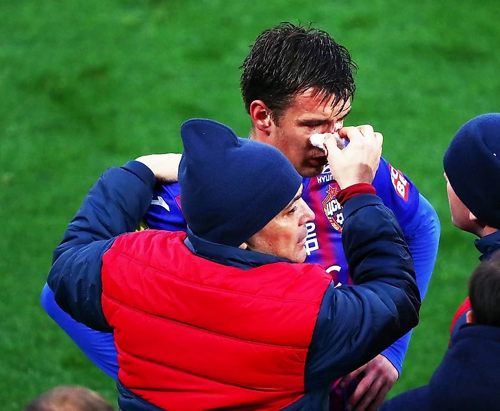 ЦСКА в воскресенье в рамках 11-го тура Российской премьер-лиги обыграл "Динамо" со счетом 3:1. На 15-й минуте встречи полузащитник динамовцев Вячеслав Грулев в игровом эпизоде локтем разбил Карпову лицо, за что получил желтую карточку. Карпов получил закрытую черепно-мозговую травму, сотрясение мозга и закрытый перелом костей носа.