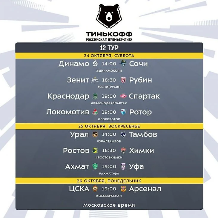 Перейдем к 12 туру. Расписание матчей в таблице ниже: