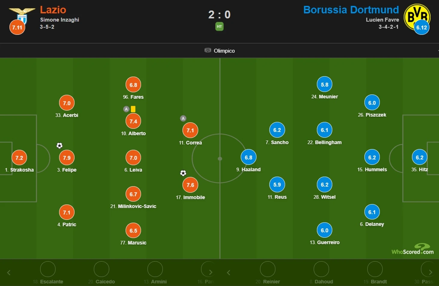 До конца тайма «Боруссия» всеми силами старалась исправить ситуацию, но если говорить по факту, по-настоящему близки гости были разве что к еще одному пропущенному голу с быстрых контратак. «Лацио» в первом тайме – это символ уверенности и надежности. Первый тайм так завершился – счетом 2:0.