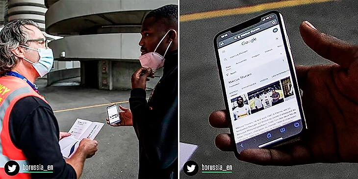 Пропустив в начале второго тайма от Лукаку, «Гладбах» отыгрался – с помощью ВАР судья Куйперс назначил пенальти за фол на Маркусе Тюраме. Француза секьюрити «Сан-Сиро» не пускали на игру, не признав в нем футболиста – Маркусу пришлось гуглить свое фото, чтобы убедить.