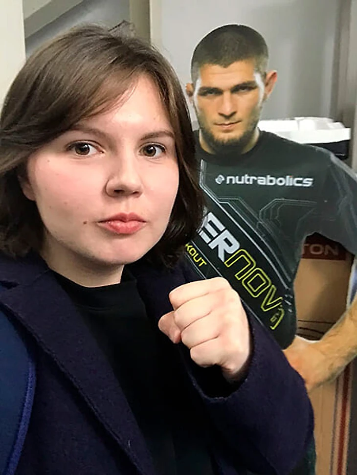 Конечно, у меня есть фото и видео с тренировки, но я готова показать разве что приличную боевую фотокарточку с Хабибом: надеюсь, у него эта суббота пройдет настолько же идеально, как моя тренировка.