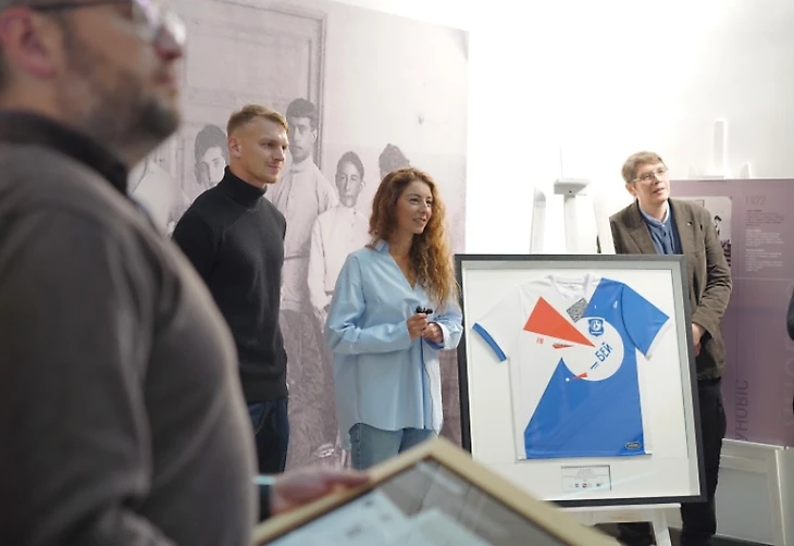 В конце сентября белорусский «Витебск» представил необычный комплект: основа узора – агитационный плакат Лазаря (Эль) Лисицкого «Клином красным бей белых», впервые опубликованный в 1920-м в Витебске.