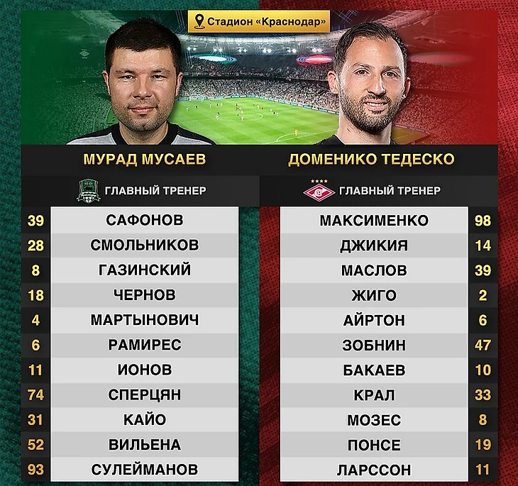 У "Спартака" Эсекьель Понсе успел залечить травму и сыграл с первых минут. Впервые в основе появился новичок Виктор Мозес. Отсутствовали в заявке «Спартака» Илья Кутепов, Остон Урунов и Александр Соболев.