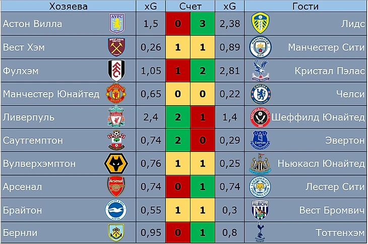 Стоит отметить матч Вест Хэма и Сити, в котором по xG горожане скорее рассчитывали на победу.