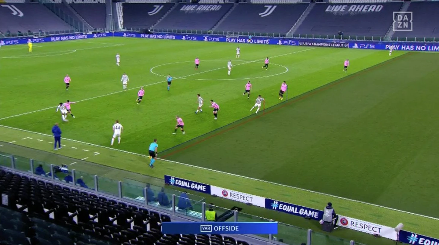 15-я минута (сразу после гола Дембеле). Куадрадо отдает длинно вперед, Мората выбегает один на один, Нето отбивает, Мората добивает. 1:1? Нет, боковой сразу поднимает флажок, а VAR подтверждает отмену.