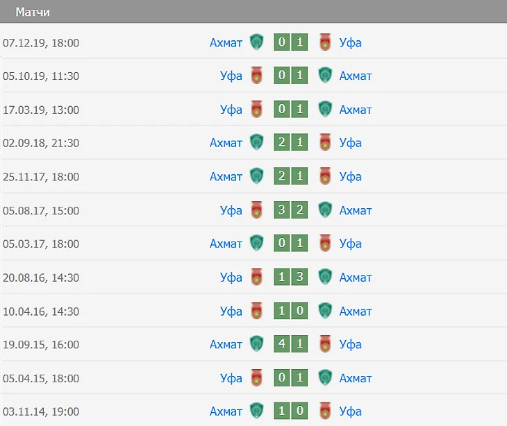 История встреч между Ахматом и Уфой.