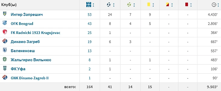 Статистика Андрича за карьеру (по данным transermarkt.ru)