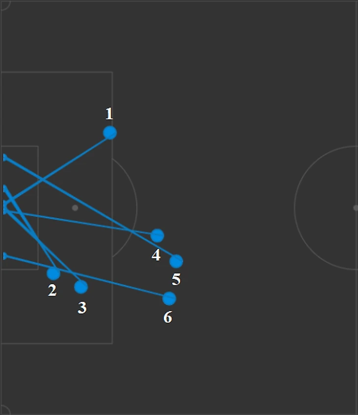 Удары по воротам Ахмата (удары под номером 1, 3 и 4 были заблокированы).