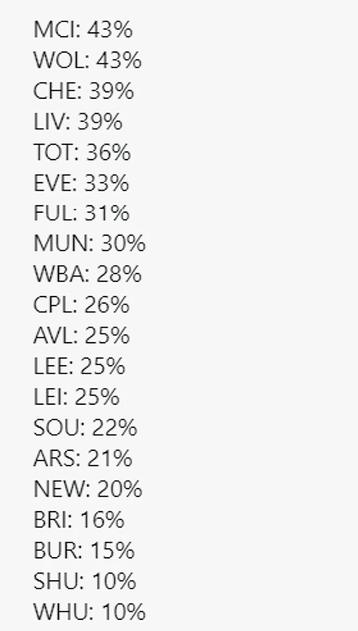 - Допустили 30 ударов в створ своих ворот (больше допустили только Вест Бром, Фулхэм и Ньюкасл)