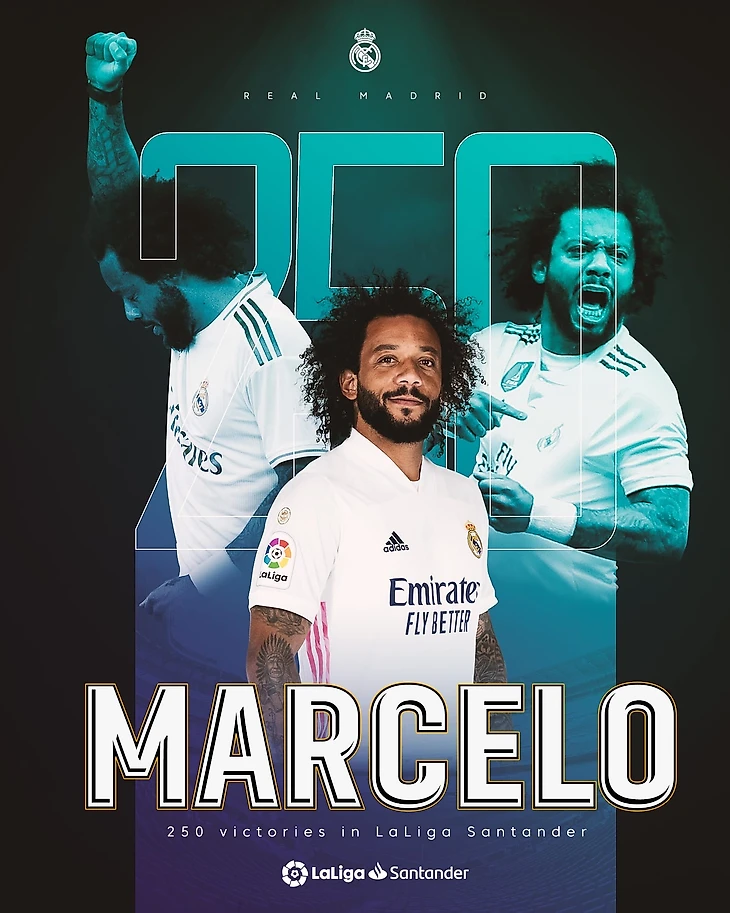 Марсело выиграл свой 250-й матч в составе «Реал Мадрид» в Ла Лиге.