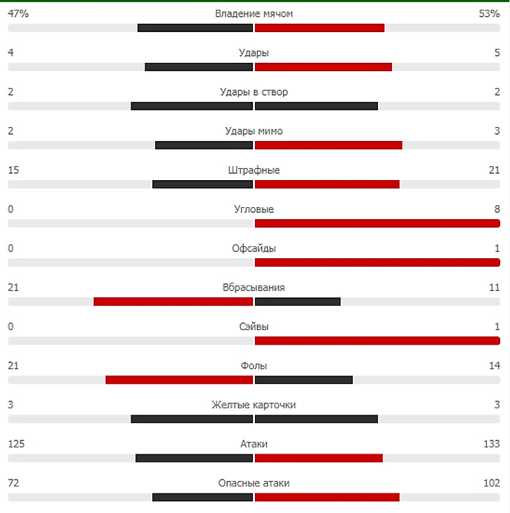 Львов действовал с низкой линией обороны и рассчитывал на быстрые атаки. План Шумского сработал. Гости имели отличный шанс спасти матч в компенсированное время, но Кане не реализовал пенальти (вратарь).
