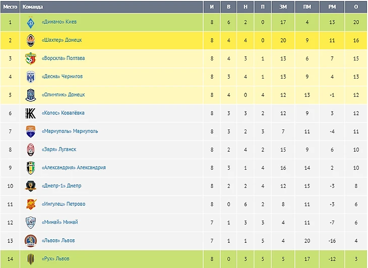 Турнирная таблица УПЛ после 8 туров: