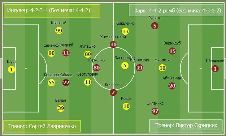 В завершении, нужно отметить, что Заря в отличие от Динамо и Шахтера не запрещала использовать Янакова и Белоцерковца в очном противостоянии. Первый вышел на поле во втором тайме и забил гол со штрафного, второй остался в запасе.