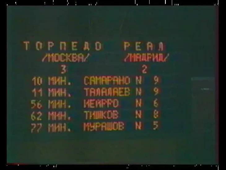1. "Торпедо" (Москва)-"Реал" (Мадрид). 1/16 финала Кубка УЕФА 1992/1993. Счёт-3:2.