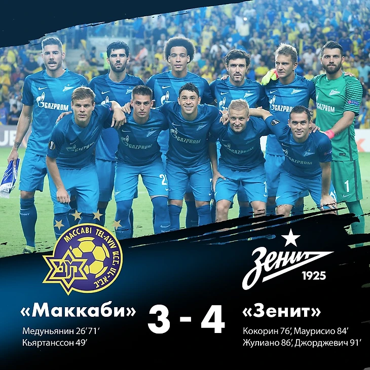 4. "Маккаби" (Тель-Авив)-"Зенит" (Санкт-Петербург). Групповой этап Лиги Европы 2016/2017. Счёт-3:4