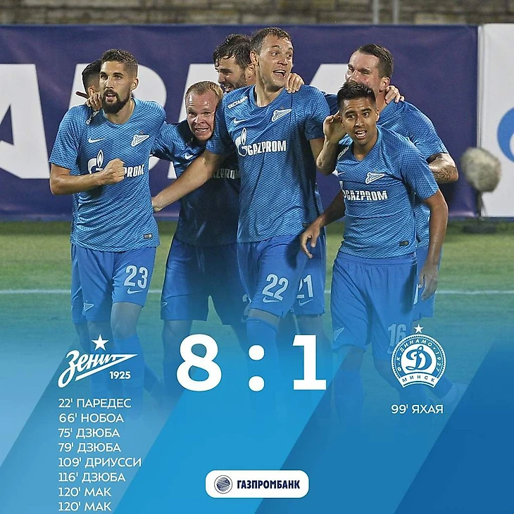 2. "Зенит"-"Динамо" (Минск). 3-й отборочный раунд Лиги Европы 2018/2019. Счёт-8:1.