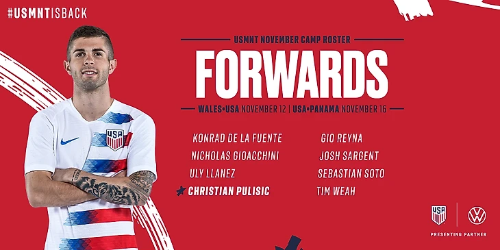 Twitter-аккаунт футбольной сборной США представил заявку национальной команды на ближайшие товарищеские матчи со сборными Уэльса (12 ноября, Суонси) и Панамы (16 ноября, австрийский Винер-Нойштадт). Впервые вызван в сборную 19-летний воспитанник «Ла Масии» Конрад де ла Фуэнте. Конрад до сих пор не получил возможности дебютировать в составе главной команды «Барселоны».