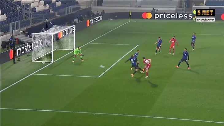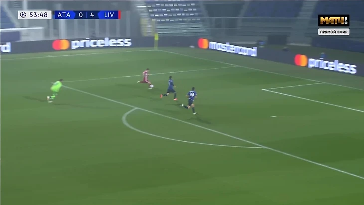 Первый гол Диогу забил, получив мяч от Трента и на скорости ворвавшись в штрафную Аталанты. Несмотря на попытку защитника соперника схватить за футболку, Жота хладнокровно отправил мяч в сетку ворот.