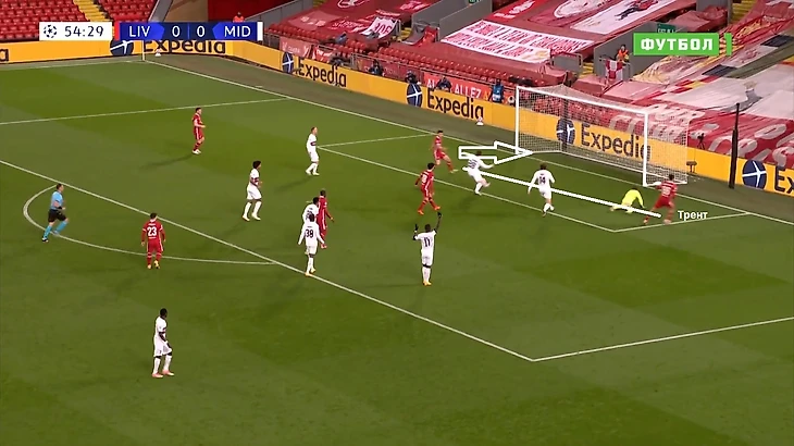 Через два дня в матче Лиги чемпионов против Мидтьюлланда, Клопп выпускает Диогу Жота с первых минут в атакующем трио вместе с Минамино и Ориги. И наш герой на 55 минуте с передачи Трента Александра-Арнольда забивает свой первый еврокубковый мяч за Ливерпуль.