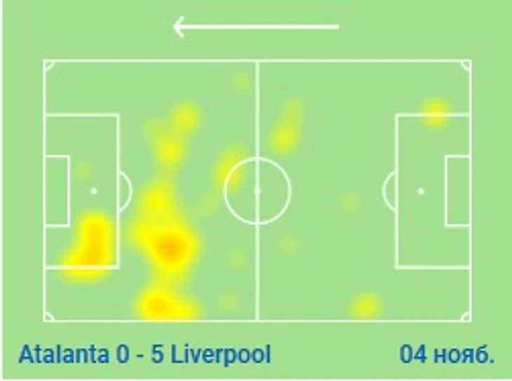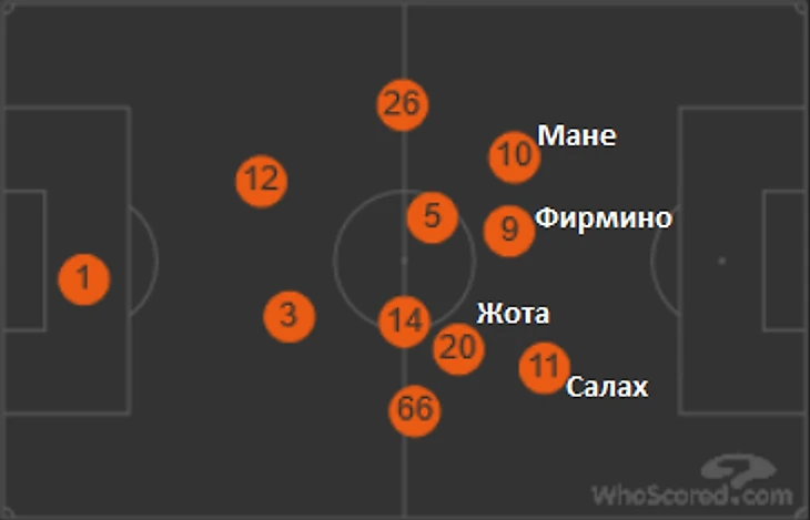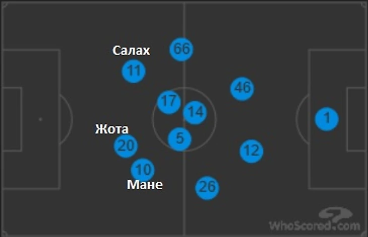 Против Аталанты Жота вышел центральным нападающим в тройке с Мане и Салахом. Но по ходу игры смещался левее, ближе к флангу, на свою привычную позицию.