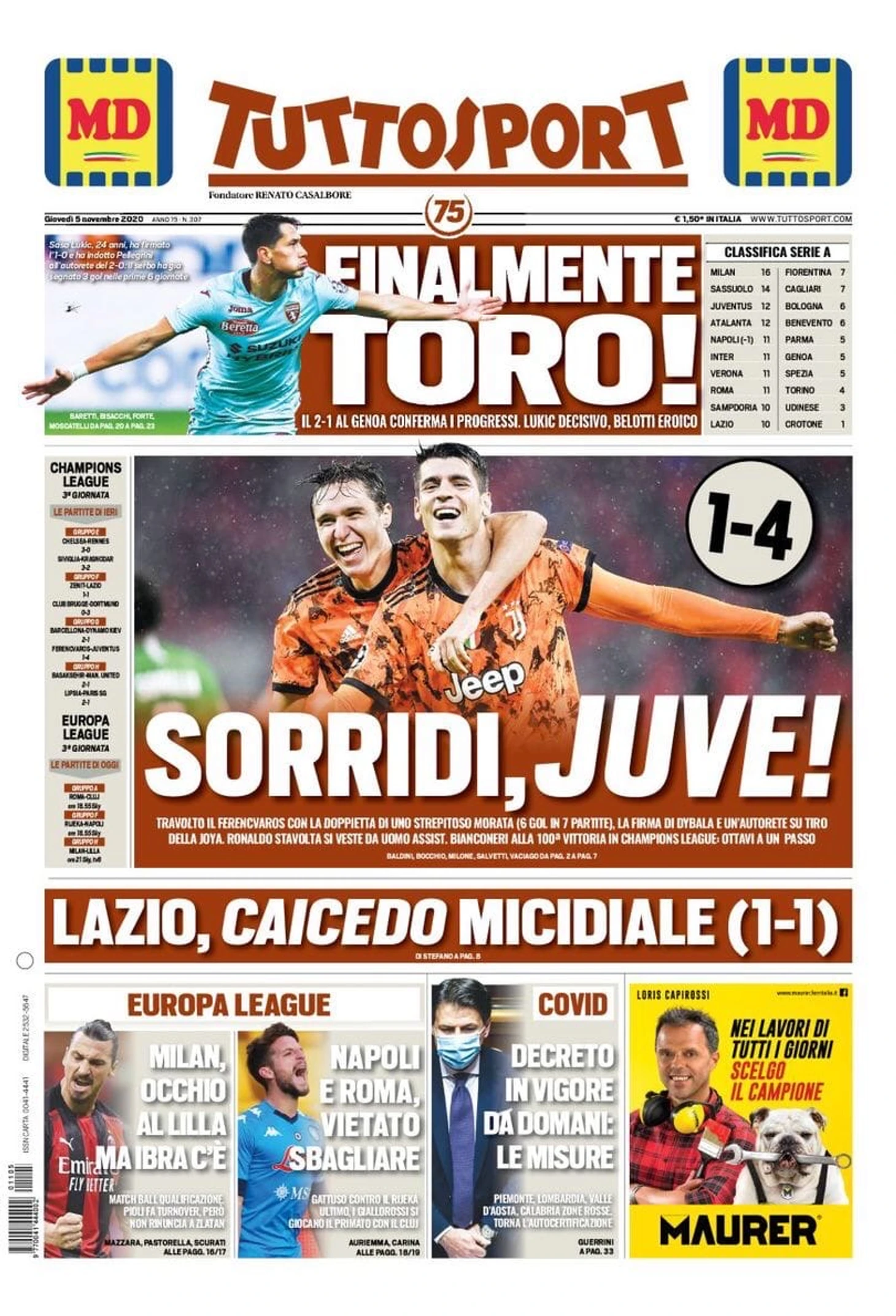 Победа «Ювентуса» над «Ференцварошем», ничья «Лацио» с «Зенитом» на фоне сомнительных тестов на ковид, а также сегодняшние матчи «Милана», «Наполи» и «Ромы» в Лиге Европы – в утреннем обзоре заголовков итальянских спортивных изданий в блоге «В гостях у Кальчо».
