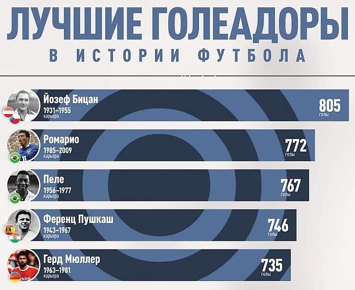 Йозеф Бицан — 759 голов в 495 матчах; 1,53 в среднем за матч;
