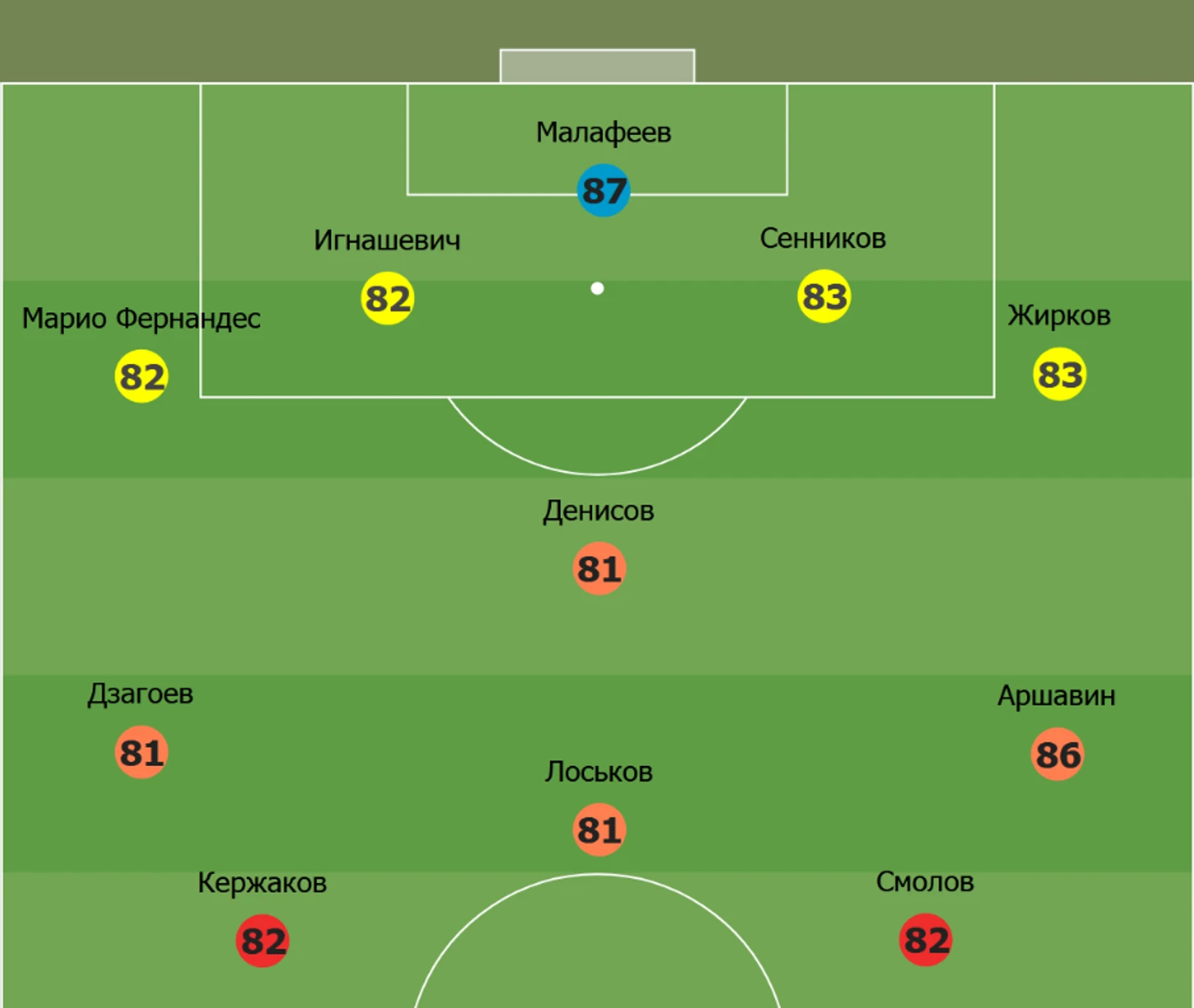 Схематично получившаяся сборная, основанная на лучших рейтингах, выглядит так: