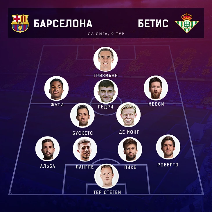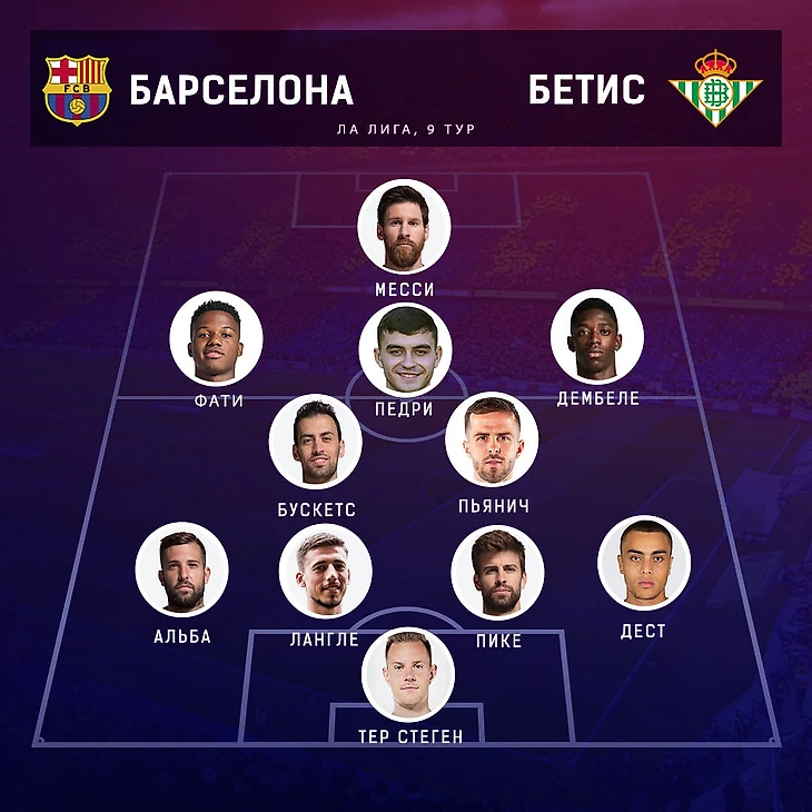 📌 Дембеле сыграет в старте? Дест предпочтительнее Роберто? Выбираем состав «Барсы» на матч с «Бетисом» 👍👎