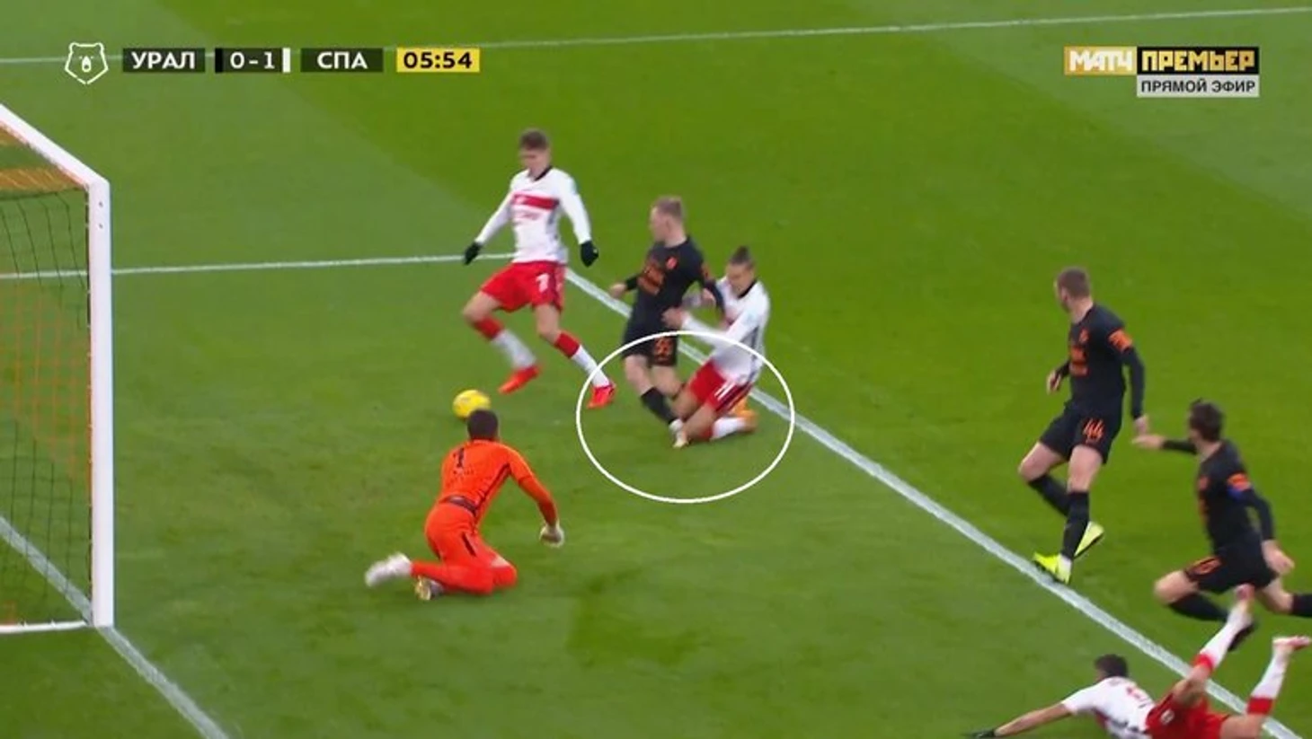 И привычно резво начала второй тайм, прижимая Урал к воротам и строя позиционную атаку. Основное движение, следом за Зобниным сместилось на правый фланг. Иногда очень "на тоненького" но проходы по флангам шли именно справа. Особенно забавно было "исполнение" на 52-й минуте, когда Соболев, загнав себя в угол по "дворовой классике" катал мяч и крутился с ним, пока не был сбит. Штрафной был опасен - Жиго чуть не внёс мяч в ворота.