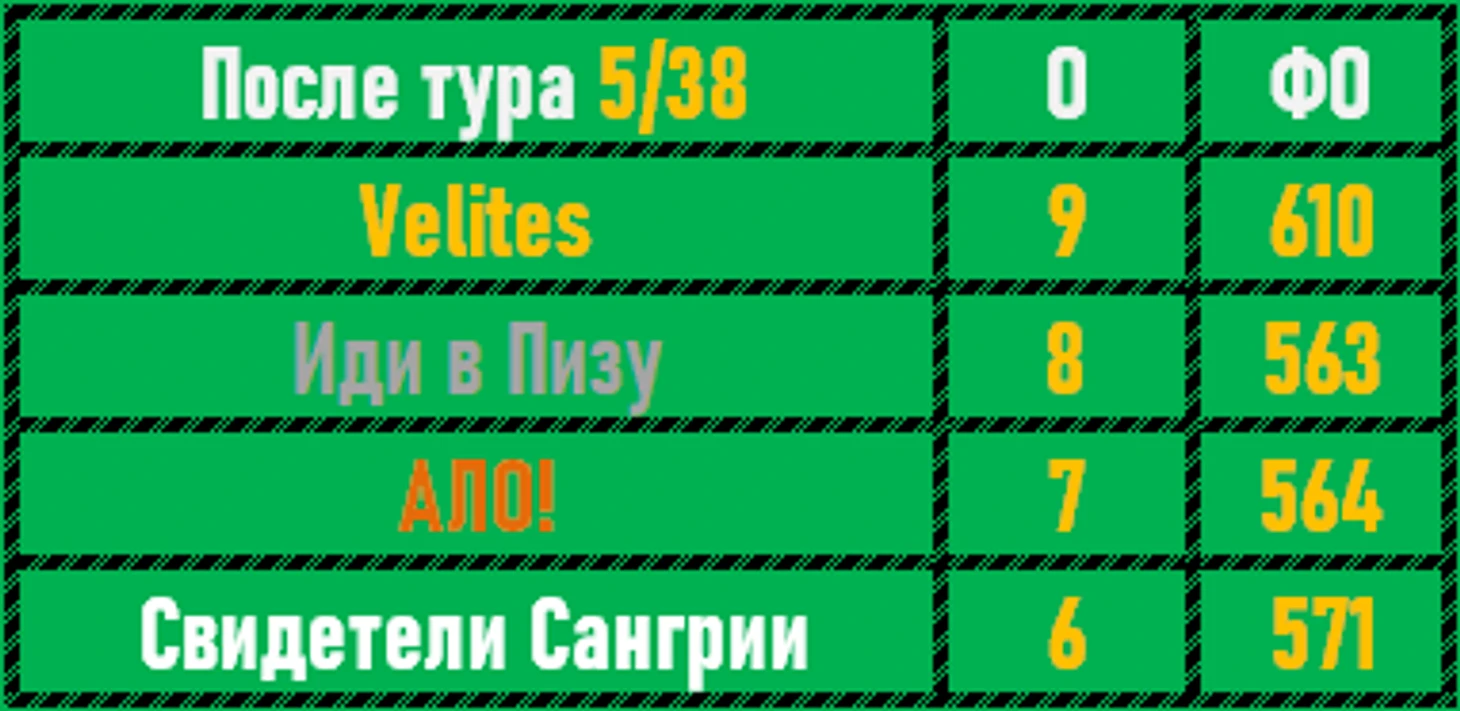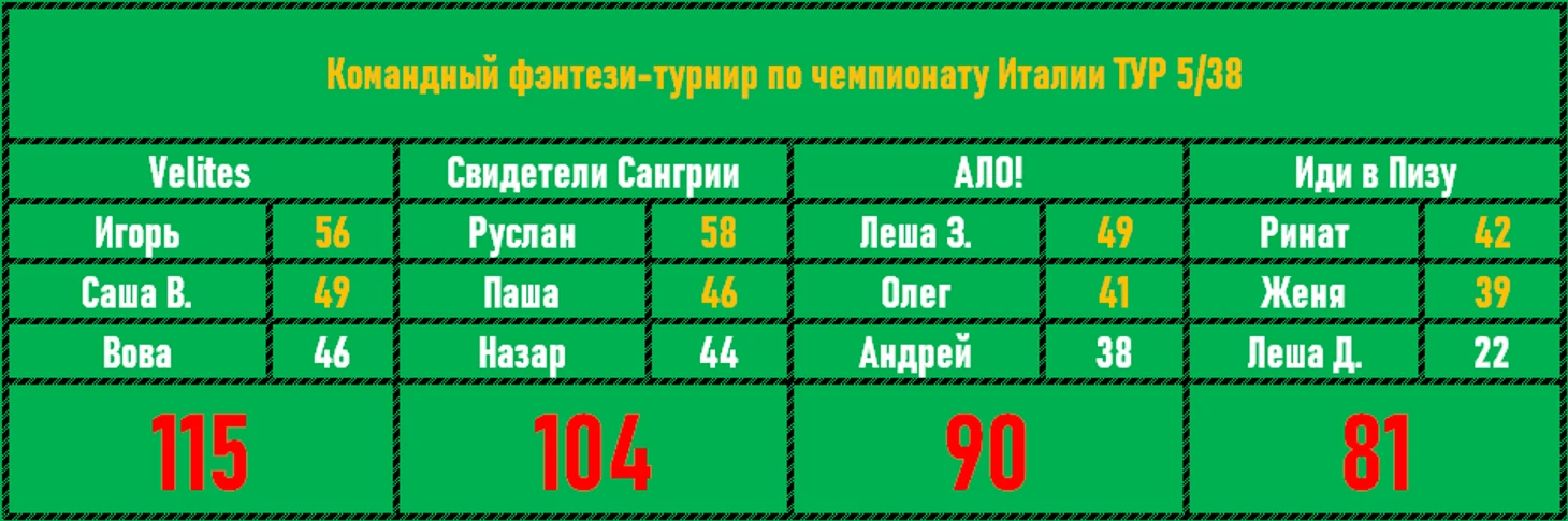 Отдаем старый должок по Италии! Всё печально для Иди в Пизу: снова последнее место и недобор важных очков. Это позволило выйти на первое место коллективу Velites!