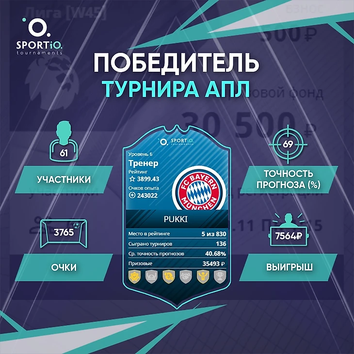 pukki был сильнее всех в «Турнир АПЛ», его выигрыш равен 7564₽!
