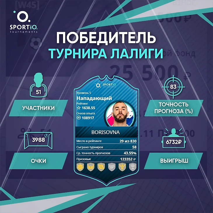 Победителем «Турнир ЛаЛиги» стал borisovna, 6732₽ - его выигрыш!