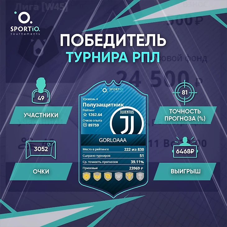 GorloAAA был сильнее всех в «Турнир РПЛ», его выигрыш равен 6468₽!