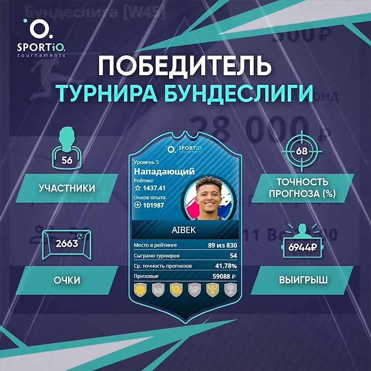 «Турнир Бундеслиги» занес AiBek, выиграв 6944₽!