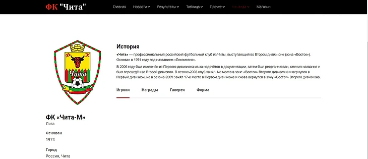 скриншот с официального сайта ФК "Чита"