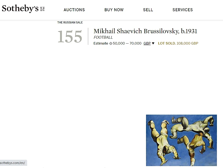 Картины, оставленные Мишей Брусиловским во Франции и США, периодически продаются на крупнейших аукционах мира. В 2006 году на аукционе Сотбис в Лондоне картина «Игра в мяч» (Футбол) была продана за 108 тысяч английских фунтов.