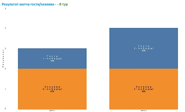 Движемся дальше, теперь анализируем столбики. Ура, столбики :) Да ещё какие столбики, синенькие и оранжевые. Ну вообще, клаааасссс. Решил, Вас немного развлечь. Итак, анализируем цифры в разрезе побед гостей и хозяев и по ЮФЛам отдельно. Удивительно, но показатели синхронные.