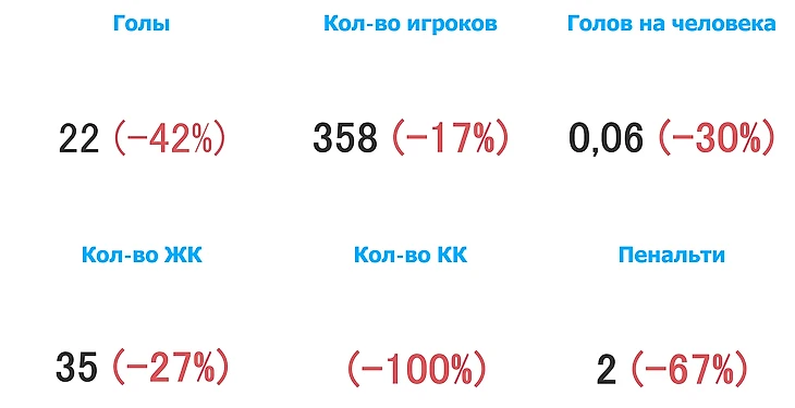 Сегодня начнём с общего графика. Отмечаем, что все показатели упали по отношению к предыдущему 7-му туру. 8 тур стал самым не результативным, всего 22 гола, и 0,06 голов на человека. Как вы думаете, в чём причина?
