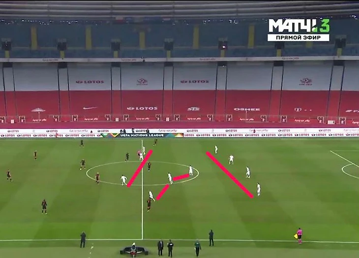 Whoscored нарисовал стартовую расстановку как 4-1-4-1, где связующим опорником выступил Гжегож Крыховяк, однако я больше склоняюсь к 4-2-3-1. Матеуш Клих находился рядом с игроком московского "Локомотива", что также подтвердила тепловая карта, а единственного форварда в лице Роберта Левандовски поддерживали Пётр Зелински и два крайка - Камиль Юзвяк и Пшемыслав Плахета. Юные дарования поляков были одними из немногих светлых пятен в этот вечер.