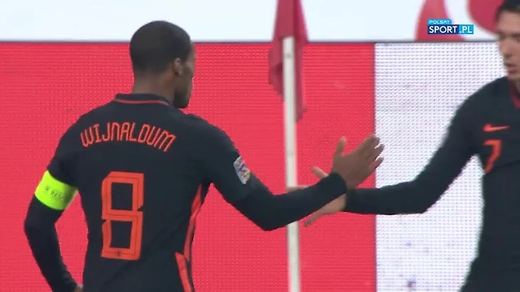 "Оранье" откровенно наиграли на забитый мяч в этой встречи и таки вынудили поляков ошибится. Ян Беднарек зачем-то свалил Вейналдума, а Депай едва не разорвал сетку с 11 метров. На этом гости не остановились и забили победный гол. Это всё тот же полузащитник "Ливерпуля" выпрыгнул выше всех при подаче с углового. У Вейналдума это уже третье взятие ворот в двух последних играх.