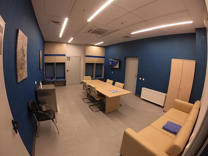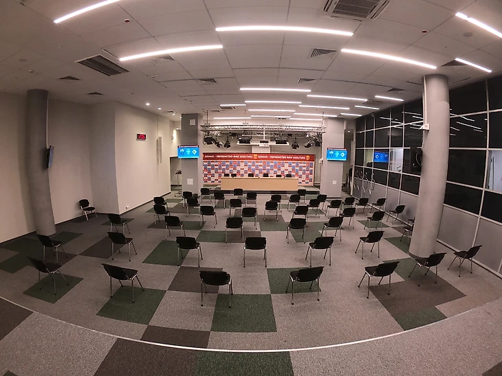 На самом стадионе в ходе экскурсии показали зал пресс-конференций, с аккуратно-антиковидно расставленными стульями, аппаратную комнату, раздевалки домашней и гостевой команд, тренерские комнаты, вип-ложи, подтрибунные помещения, микст зону, и многое другое.