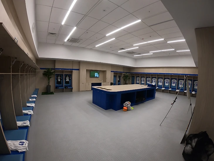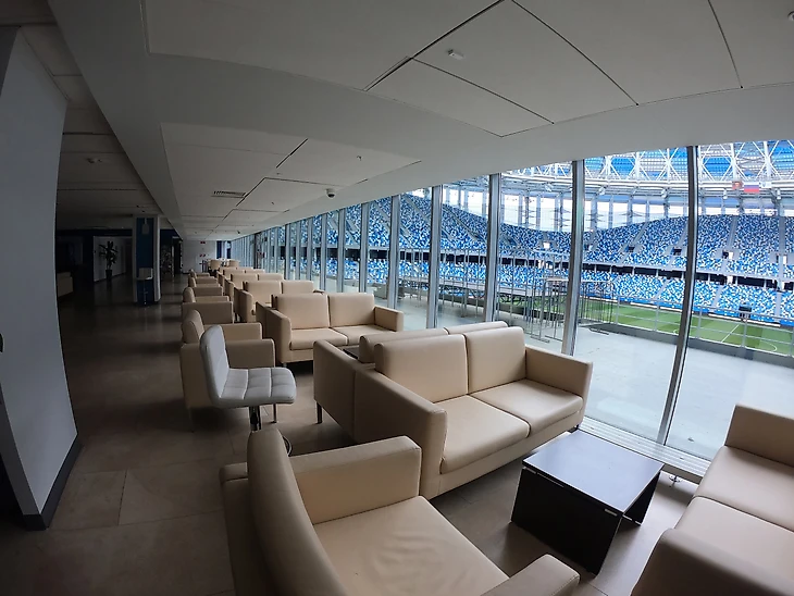 На арене все новенькое, чистенькое, ну помимо желтой воды, которая идет в раковинах туалета, но это спишем на то, что болельщиков нет сейчас, поэтому ничего страшного.