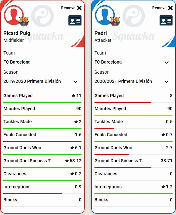 А что с оборонительными действиями и физическими данными, которые Пучу ставили в укор голландец и его фанбаза? Педри превосходит маринуемого конкурента по редкости фолов и перехватам. Пуч же сильнее по отборам и выносам. Сразу хочется отметить, что это невероятно: Педри чаще фолит, нежели чисто отбирает мяч. А теперь перейдем к «вишенке на торте» обвинений в адрес каталонца: Рики выигрывает наземные дуэли чаще, чем в 2 раза, при этом и процент успешных дуэлей у него ощутимо более высокий. Ссылка на соответствующую матрицу на Squawka.